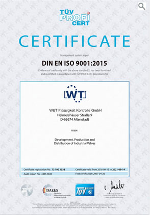 W&T Flüssigkeit Kontrolle GmbH ist der Einführer weltweit im Bereich Ventilenherstellung. Das Unternehmen mit langer Geschichte und erfolgreichem Antrieb wird im Jahr 1932 in Frankfurt gebildet. Das Unternehmen verfügt über sechs Produktionsstätten weltweit und verfügt über unabhängige Niederlassungen und Vertriebsniederlassungen in mehr als 40 Ländern und Regionen der Welt.
